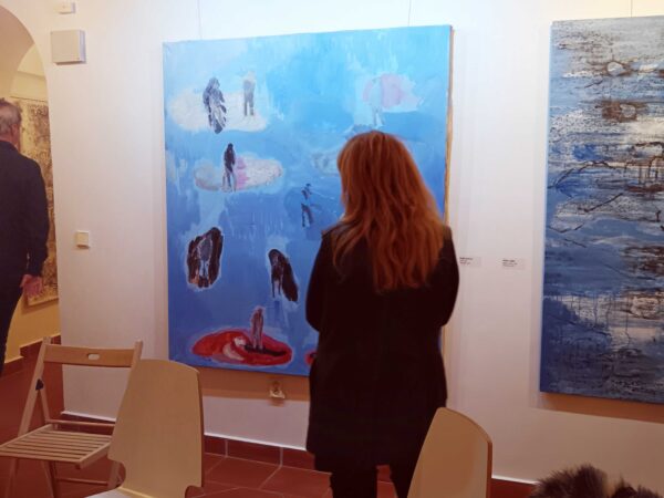 Výstava s názvem „To je ta chvíle“ představuje tvorbu Lenky Vilhelmové, která dlouhodobě pracuje s motivy proměny, paměti a určitého tichého napětí, které nese mnohovrstevnatou symboliku jak pro konkrétního jedince, tak pro společnost. Zabývá se vizuálním zachycováním okamžiku, krátkého, někdy téměř nepostřehnutelného záchvěvu, kdy se v člověku nebo prostoru něco změní. Její díla — ať už malby, grafiky či prostorové objekty — zachycují momenty, kdy se všední realita na krátký čas zlomí a ukáže svou jinou, citlivější vrstvu. Právě tyto prchavé, ale určující fragmenty všednosti, tvoří základní osu autorčina uměleckého uvažování. Základní prostor, kde se vše odehrává, je člověk sám a především jeho hlava a ruce coby náměty provázejí diváka skrze celou expozici.