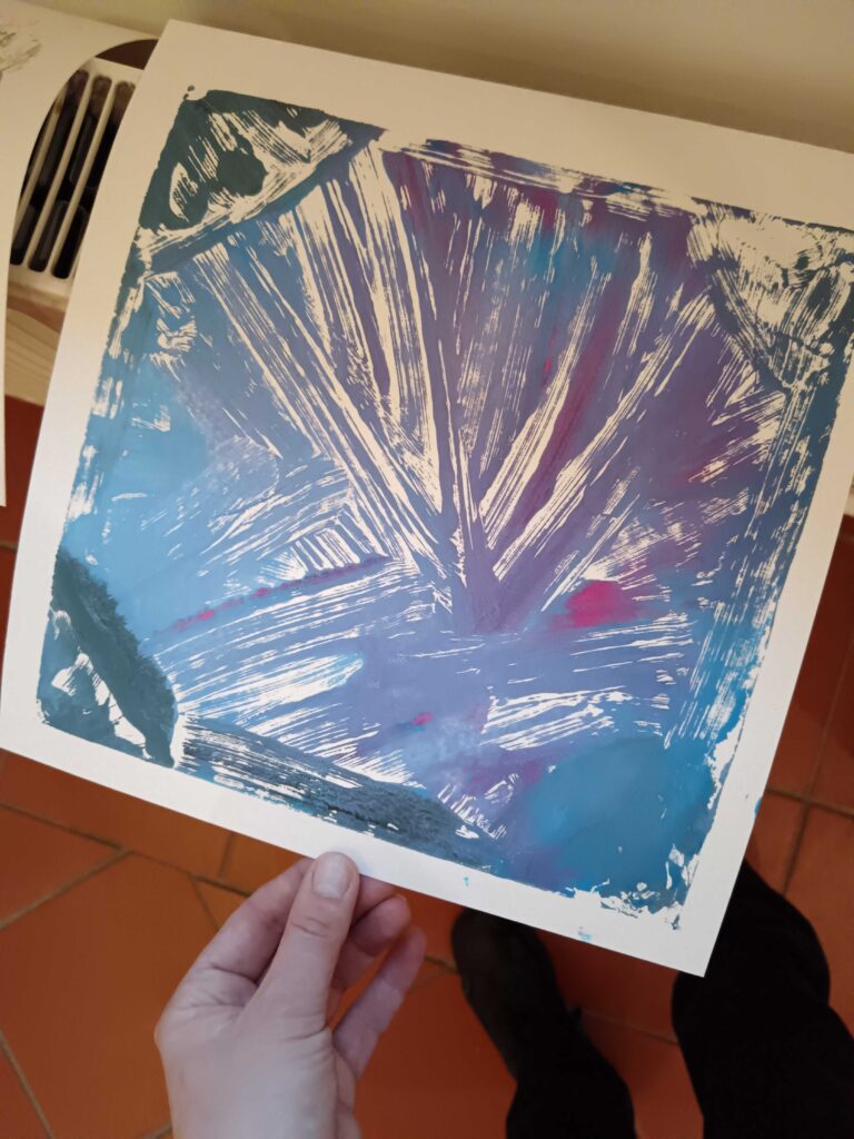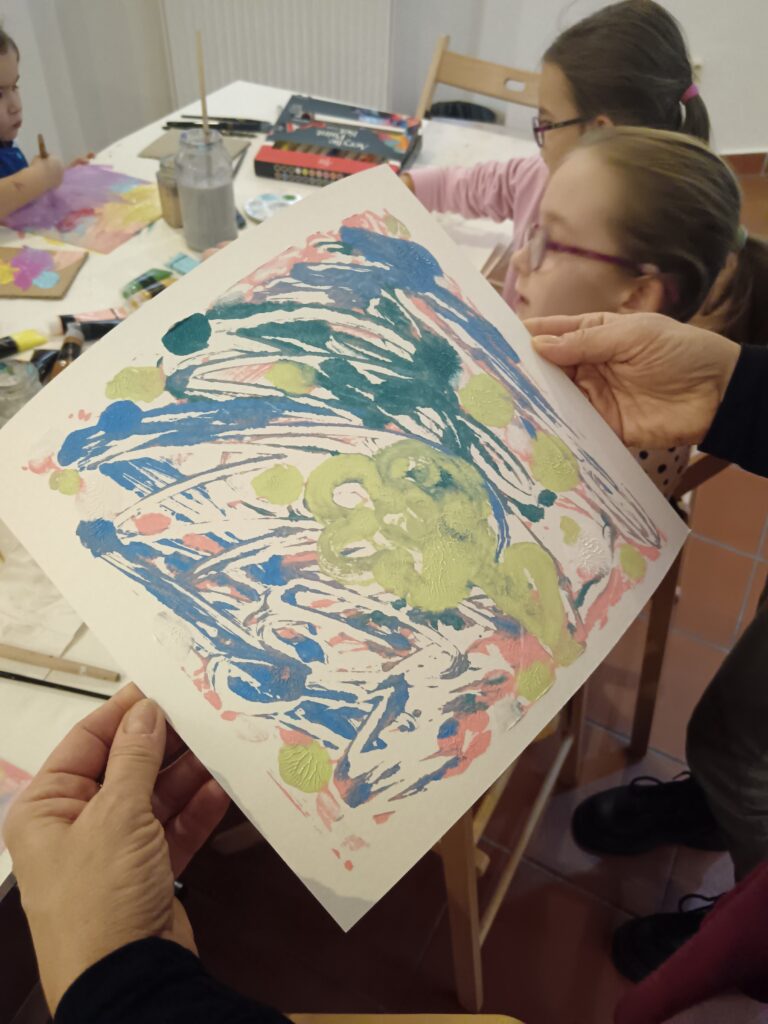 31.1. 13–16 hodin Grafická dílna o síle přítomného okamžiku s Pavlou Dražďákovou. Přijďte si vyzkoušet jednoduché grafické techniky bez použití ostrých nástrojů vhodné i pro malé děti. Společně budeme dělat „malovanou“ grafiku monotyp a roztrhneme mnoho papírů a zohybáme mnoho drátků pro slepotisk – tisk bez barvy. K tomu nám budou dělat společnost obrazy Lenky Vilhelmové, které zobrazují určité momentální rozpoložení člověka. My se také zkusíme zabořit sami do sebe a nebýt nikde jinde než právě teď a tady.