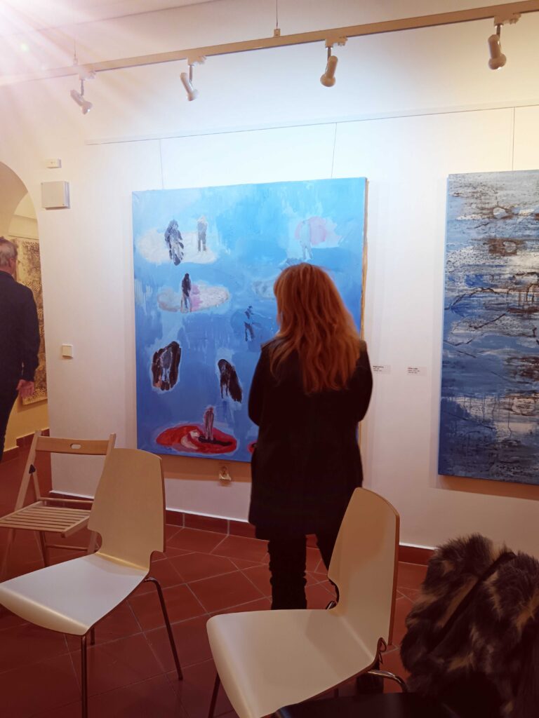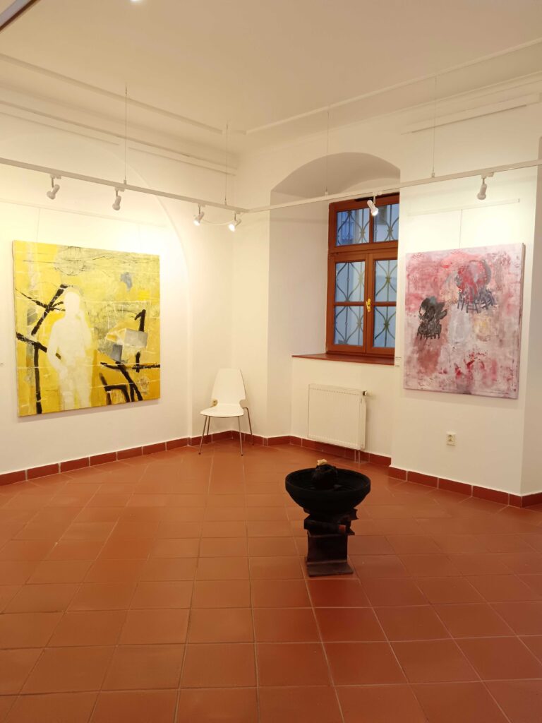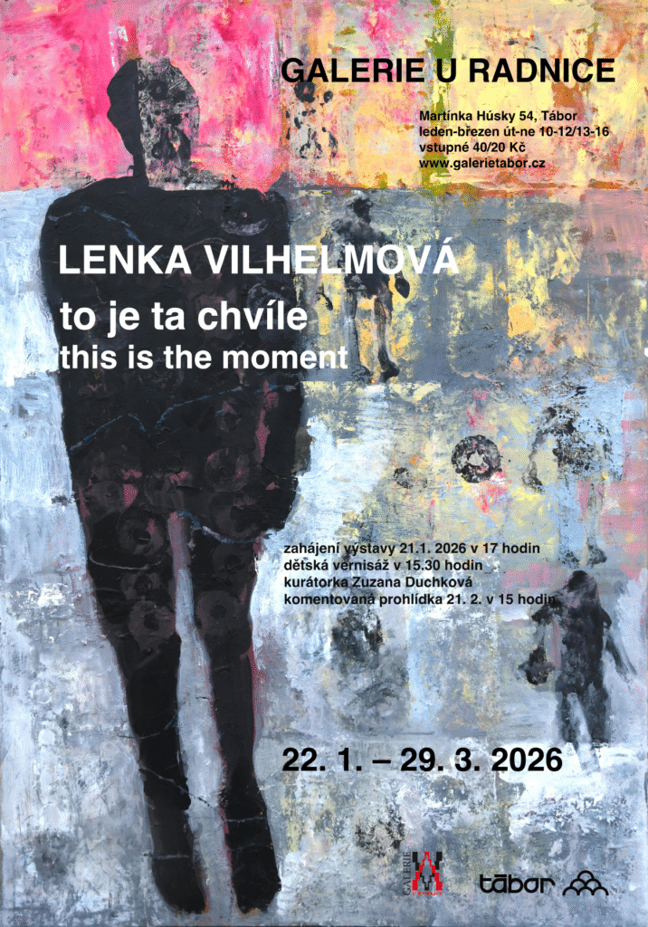 Výstava s názvem „To je ta chvíle“ představuje tvorbu Lenky Vilhelmové, která dlouhodobě pracuje s motivy proměny, paměti a určitého tichého napětí, které nese mnohovrstevnatou symboliku jak pro konkrétního jedince, tak pro společnost. Zabývá se vizuálním zachycováním okamžiku, krátkého, někdy téměř nepostřehnutelného záchvěvu, kdy se v člověku nebo prostoru něco změní. Její díla — ať už malby, grafiky či prostorové objekty — zachycují momenty, kdy se všední realita na krátký čas zlomí a ukáže svou jinou, citlivější vrstvu. Právě tyto prchavé, ale určující fragmenty všednosti, tvoří základní osu autorčina uměleckého uvažování. Základní prostor, kde se vše odehrává, je člověk sám a především jeho hlava a ruce coby náměty provázejí diváka skrze celou expozici.